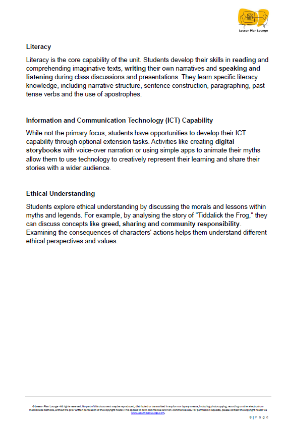 Summative Assessment Task: Conclude the unit with a comprehensive "Write Your Own Myth" task, complete with a student-friendly rubric for marking.