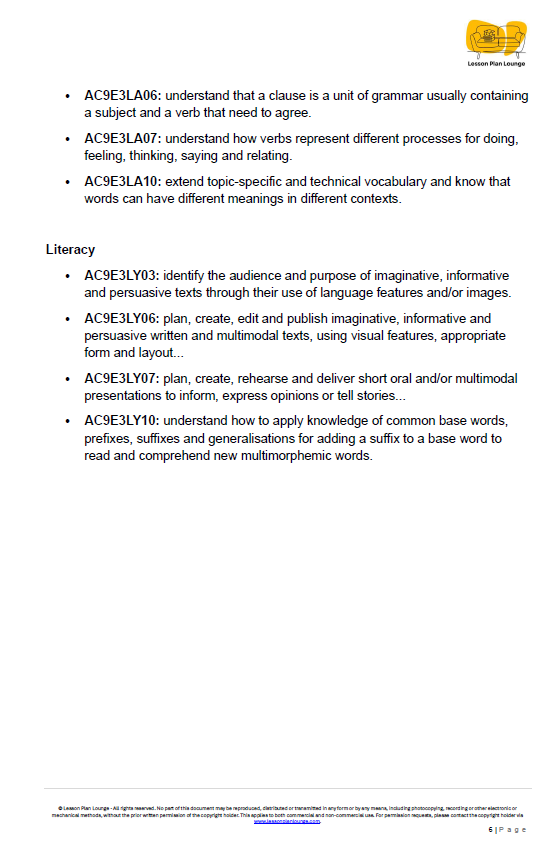Australian Curriculum Aligned: This unit is fully aligned with the Year 3 English curriculum. It explicitly covers key content descriptors including AC9E3LA03, AC9E3LA05, AC9E3LA06, AC9E3LY06, and AC9E3LY10.