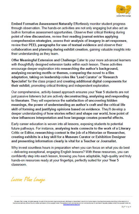Tired of spending your weekends planning? Transform your Year 5 English lessons with this complete, 9-week inquiry-based unit that brings deep literary analysis, collaborative investigation and the excitement of curating an exhibit to life!