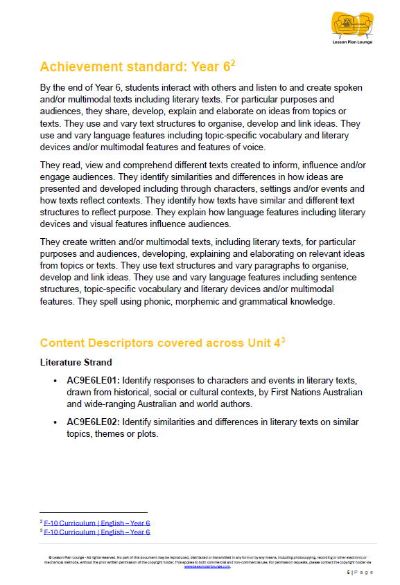- Australian Curriculum Aligned: This unit is fully aligned with the Year 6 English curriculum. It explicitly covers key content descriptors including AC9E6LE01 (Context & First Nations Authors), AC9E6LE02 (Comparing Literary Texts), AC9E6LA03 (Text Structures: Reports, Explanations, Procedures), AC9E6LA07 (Multimodal Elements: Maps, Graphs, Diagrams), AC9E6LY04 (Navigating Texts) and AC9E6LY06 (Creating Informative Multimodal Texts).