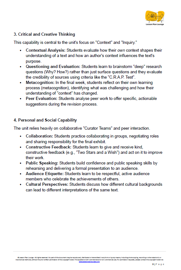 - Summative Assessment Task: Conclude the unit with a comprehensive "Digital Museum Exhibit" task, complete with a student-friendly rubric for marking both the multimodal product (website/slideshow) and the spoken presentation.