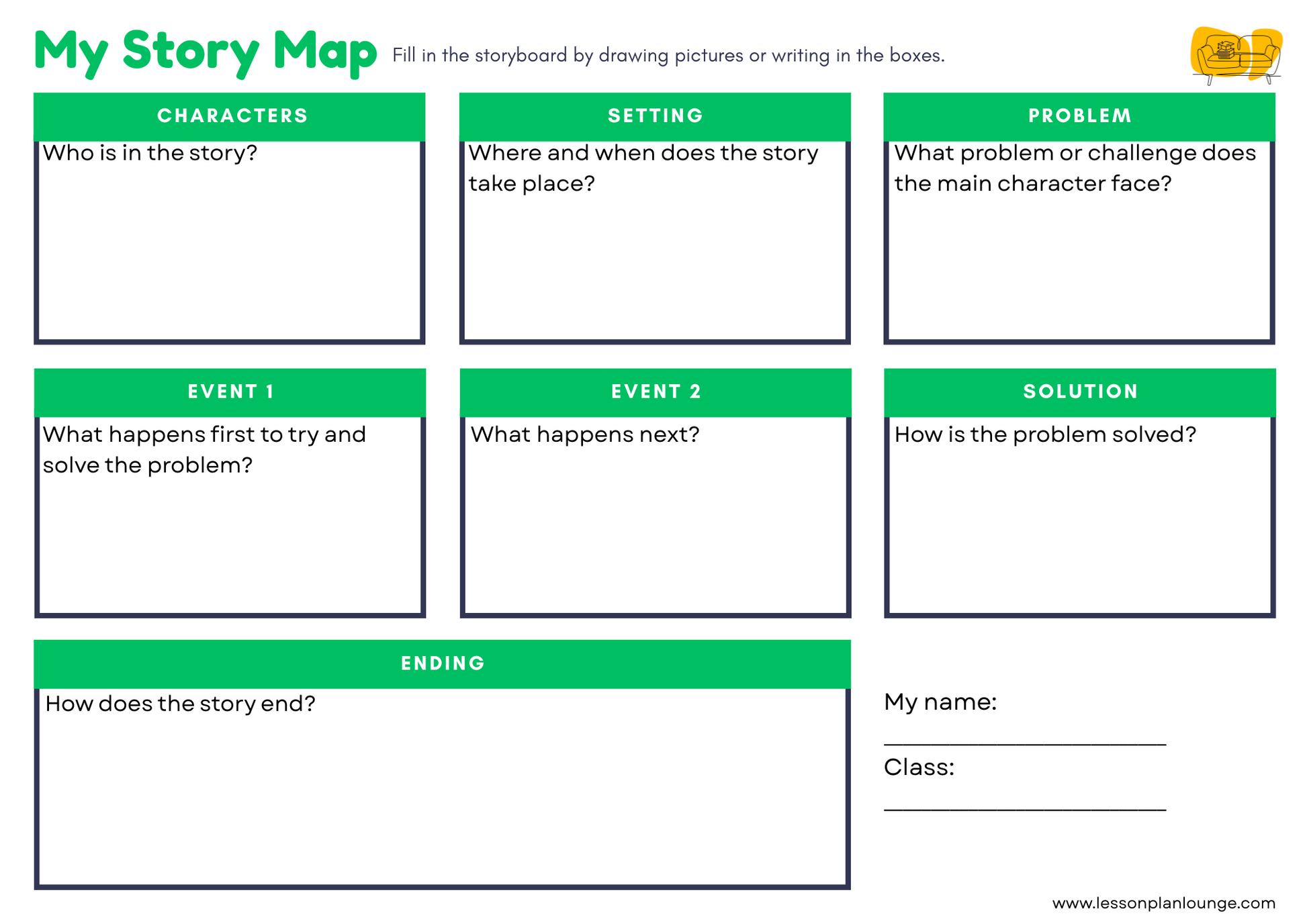 The Story Map supports reading comprehension by guiding students to identify and analyse the essential components of a narrative. It focuses on the following key areas.