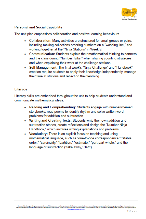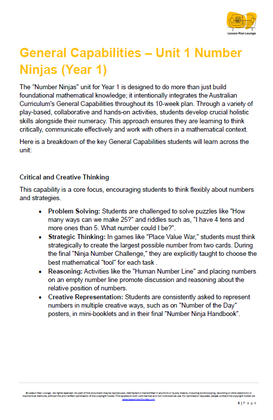 Built-in Assessment: Effortlessly monitor progress with embedded formative assessment opportunities and a complete summative task, "The Number Ninja Handbook," which includes a detailed marking rubric.