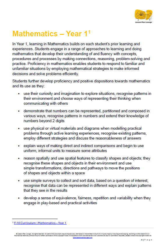 Mathematics - Unit 3 Market Maths - LESSON PLANS - Year 1