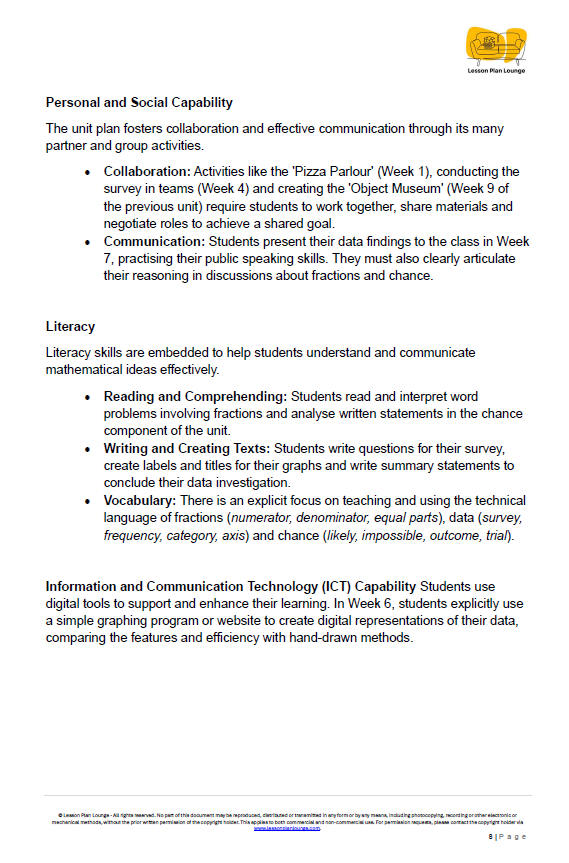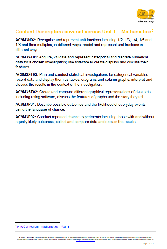 Step into the world of "Unit 4: Fractions, Data & Chance Champions," a comprehensive Mathematics unit designed to save you time and deeply engage your Year 3 students. This unit focuses on building a strong foundation in fractions, statistics and probability, moving beyond basic concepts to conduct investigations and understand the likelihood of events with creativity and precision.