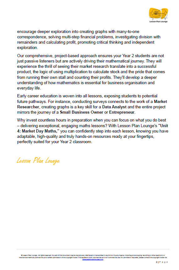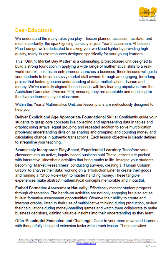Packed with creative, hands-on activities, this unit will transform your classroom into a dynamic business hub where students don't just learn about maths—they live it as entrepreneurs and savvy market-stall owners.